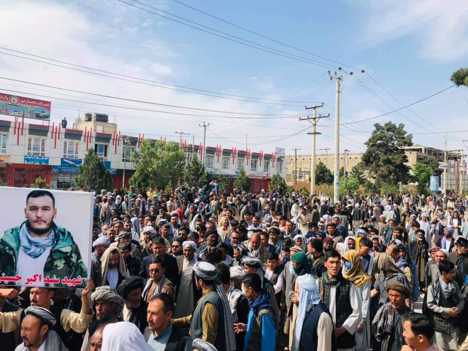 معترضان با حمل پیکرهای بی جان سید اکبر و سید امین که به گفته خانواده های شان که از سوی نیروهای ویژه امنيتی کشته شده اند، در مقابل شورای ولایتی بلخ از حکومت میخواهد که قاتلان این دو جوان را شناسایی و عدالت را عملی سازد.