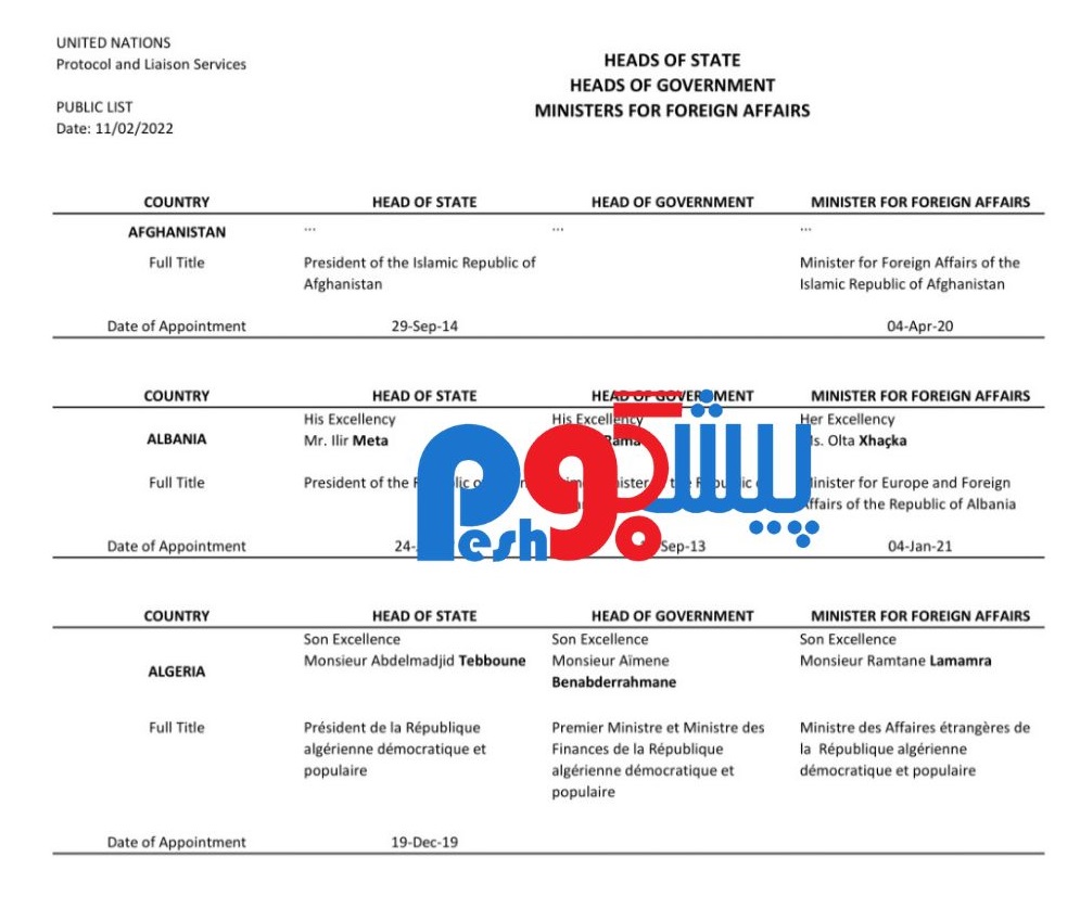 به گزارش خبرگزاری پیشگو: بر اساس این سند های که به خبرگزاری پیشگو رسیده است محمد اشرف غنی و حنیف اتمر مشروعیت حقوقی و قانونی خود را در سطح بین المللی بخصوص در نزد سازمان ملل متحد از دست داده و برسمیت شناخته نمی شوند.