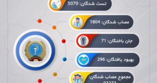 وزارت صحت افغانستان از جان باختن ۷۱ تن بیماران کرونایی در ۲۴ ساعت گذشته در کشور خبر میدهد . وزارت صحت کشور در صفحه رسمی خود از مصاب شدن ۱۸۰۴ مورد جدید بیماران کرونایی یا کوید۱۹خبر داده است همچنان در اعلامیه این وزارت آمده است که از آغاز شیوع ویروس …